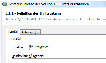 Er führt die beschriebenen Tests durch und dokumentiert sowohl per Text als auch per Testergebnis (Status) den Erfolg des Tests in einem durchgeführten Testfall.
